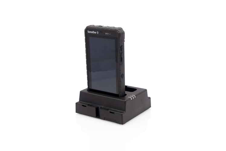 The user-friendly charging station can charge up to two SONODUR 3 devices simultaneously without having to open the splash guard. The contacts for fast and direct charging with the charging station meet IP 65 standard. Another advantage is the faster charging of a single SONODUR 3 device by the more powerful charger.